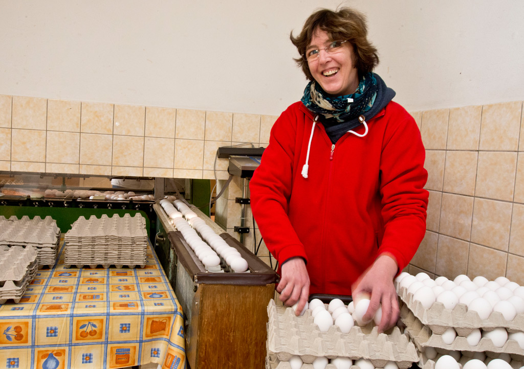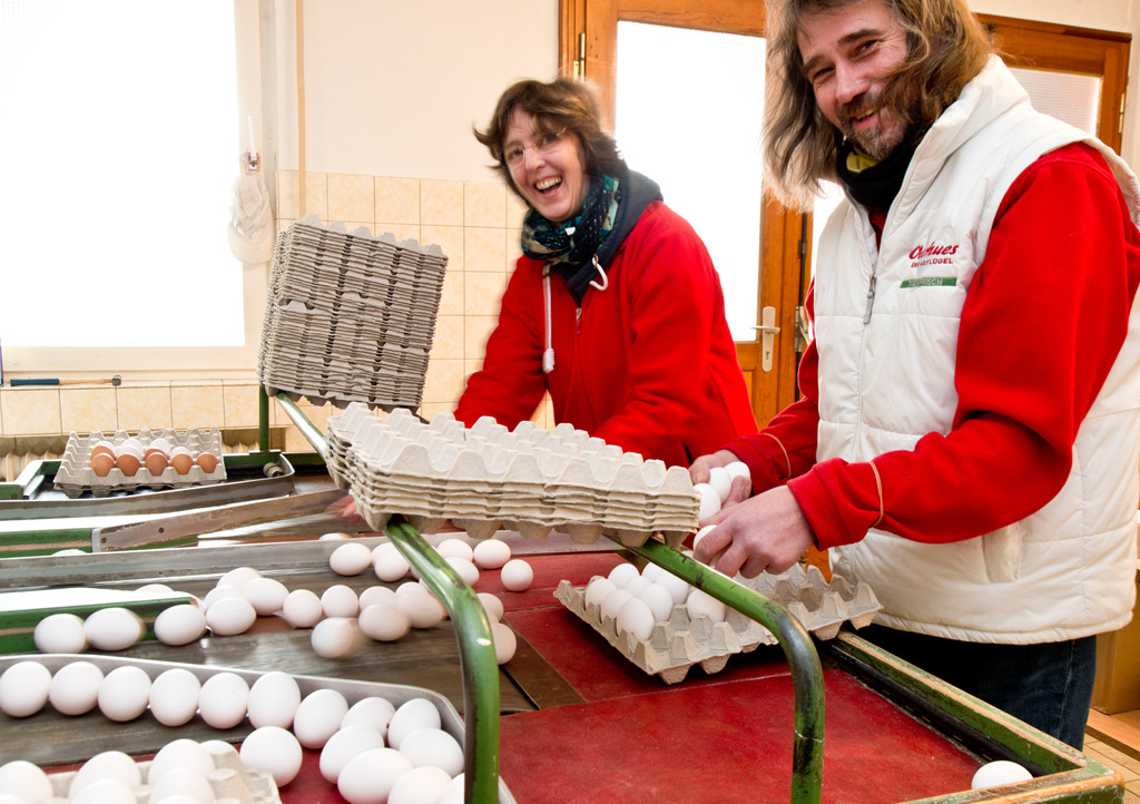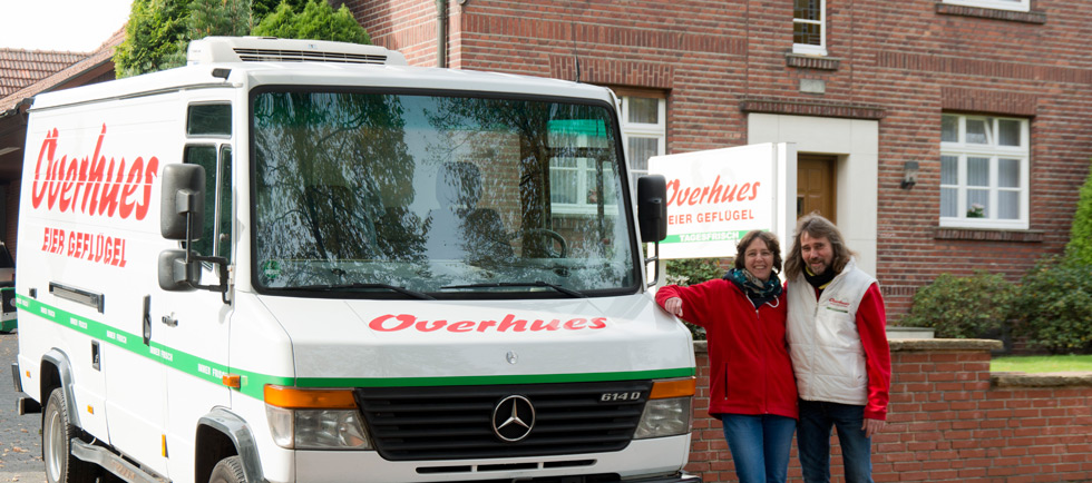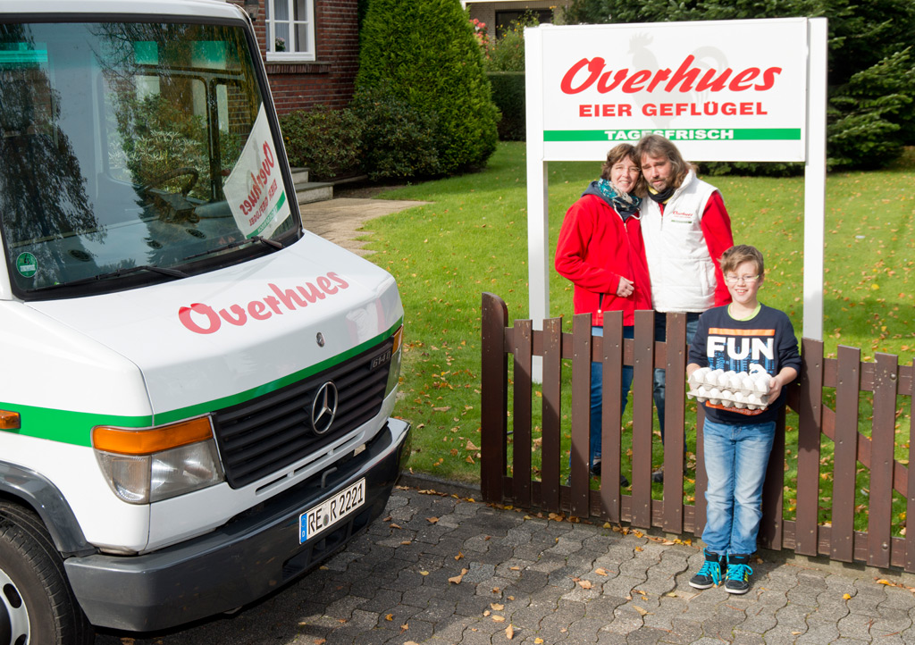 Zur Zeit umfasst der Geflügehof Overhues 2.500 Tiere. Diese werden in Kleingruppenvolieren gehalten, in den Legenester, Einstreubereiche und Sitzstangen vorhanden sind. Unter der artgerechten Haltung und dem besonderen Futtermix mit nahrhaften Zusätzen von Karotten und Paprikas entstehen so die schmackhaften Eier, die anschließend vom Familienbetrieb liebevoll verpackt werden.